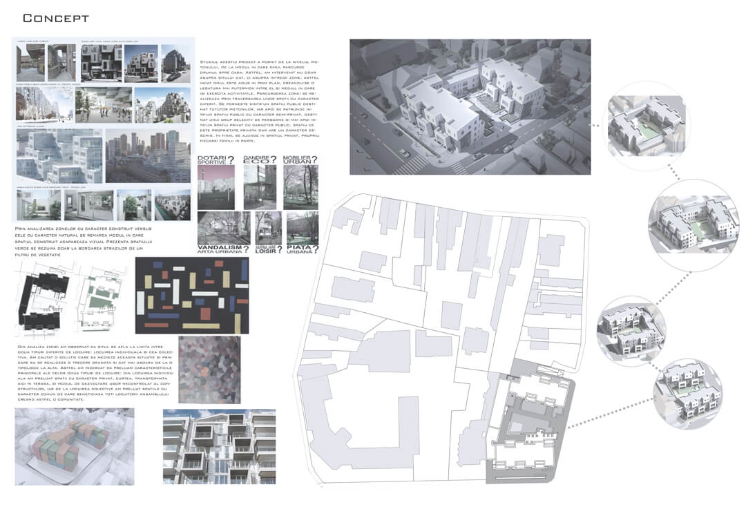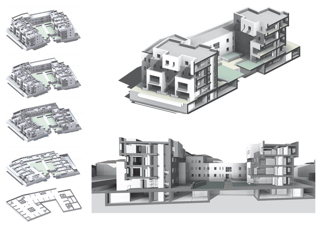 Rezultatul a constant în crearea mai multor tipuri de apartamente cu suprafețe generoase, a 3 spații comerciale închiriabile și a unui restaurant cu vedere către curtea interioară a ansamblului.