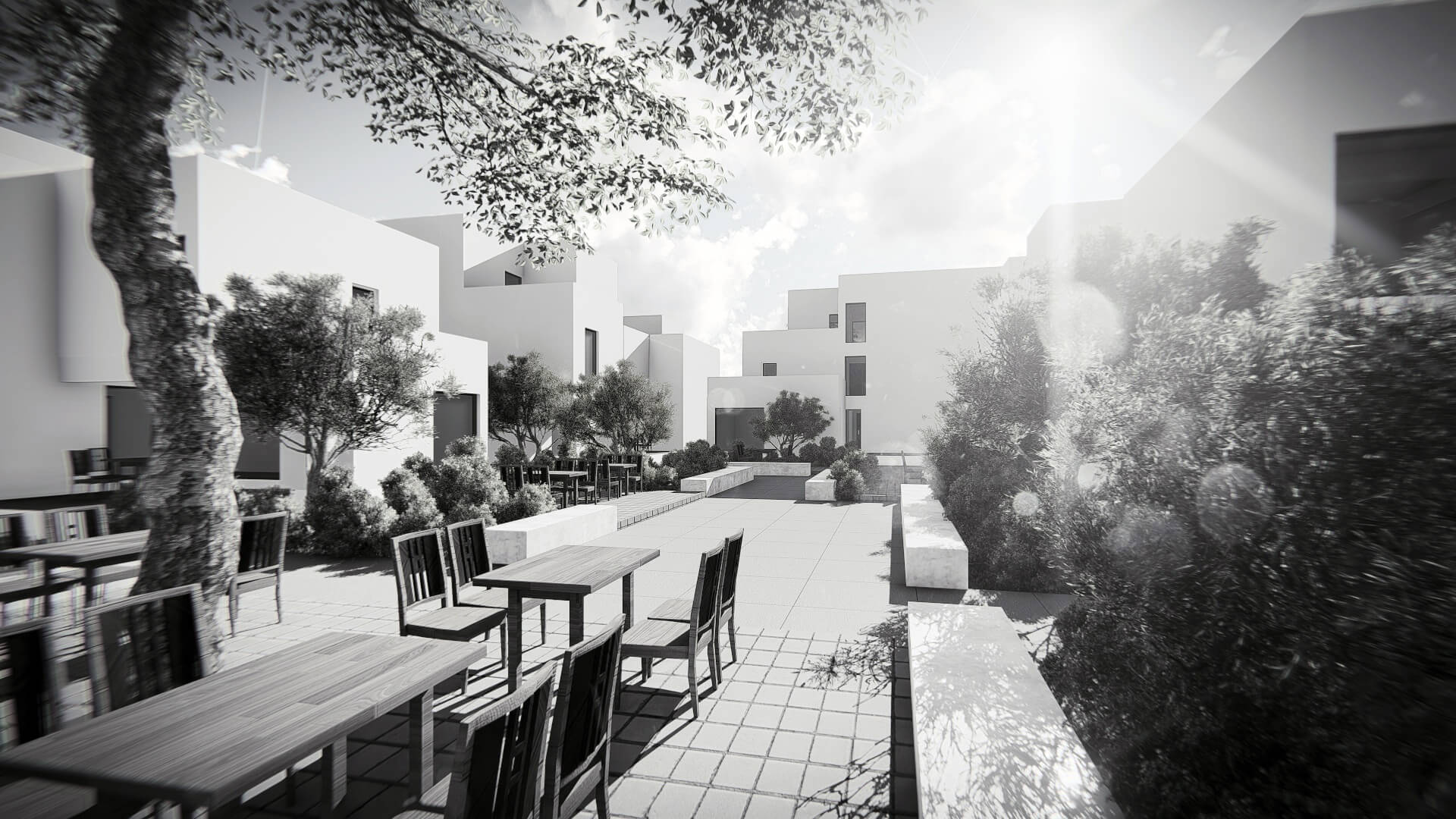 Rezultatul a fost gandirea unei incinte formate din case, cu diverse străpungeri. Curtea mare din mijloc este semi-publica, iar fiecare locuință în parte are și curtea proprie. Spațiile interioare sunt concepute în așa fel încât să fie cât mai deschise și fluide. Fiecare casă are cel puțin 2 dormitoare, din care unul matrimonial și cel puțin 3 grupuri sanitare.