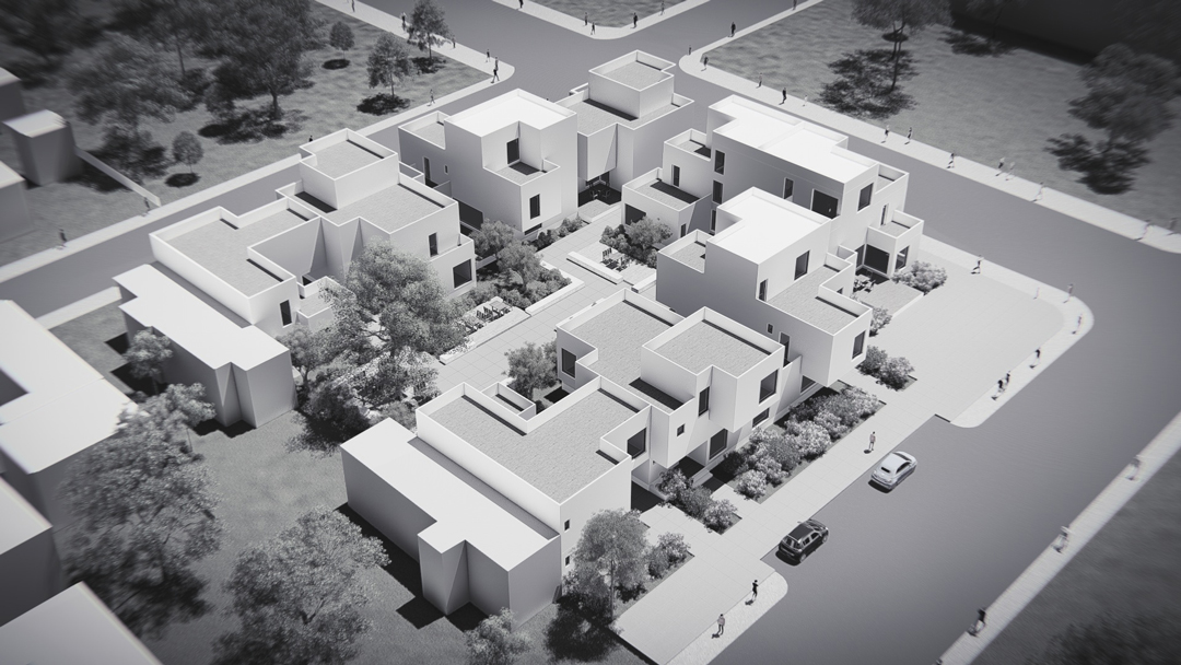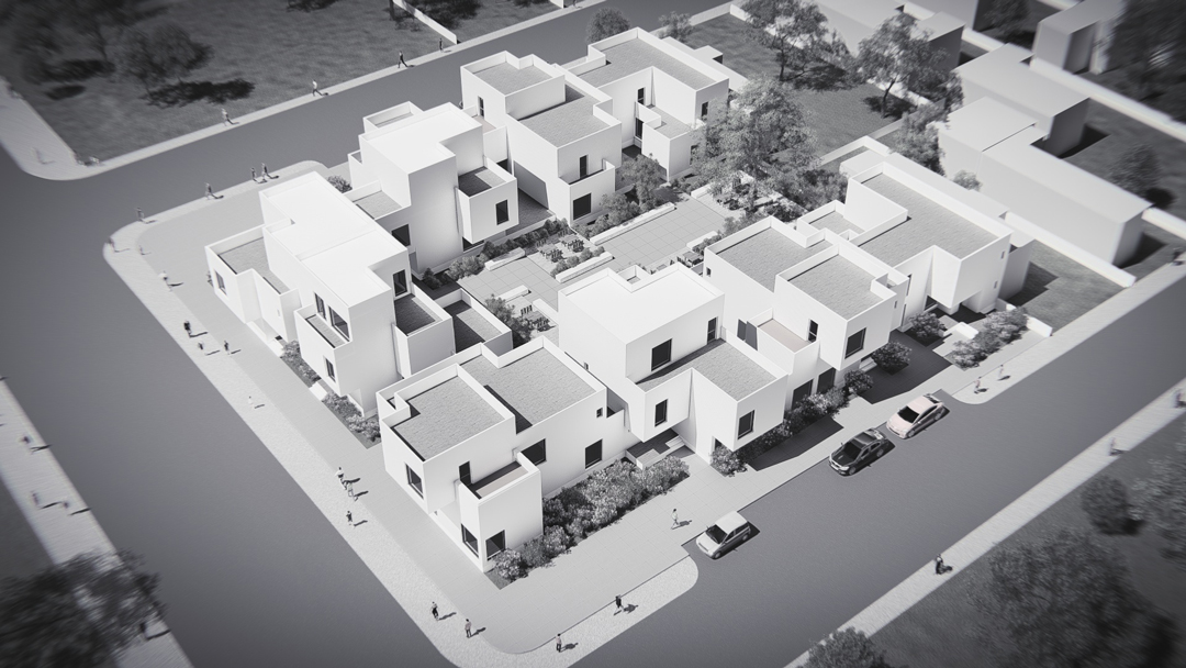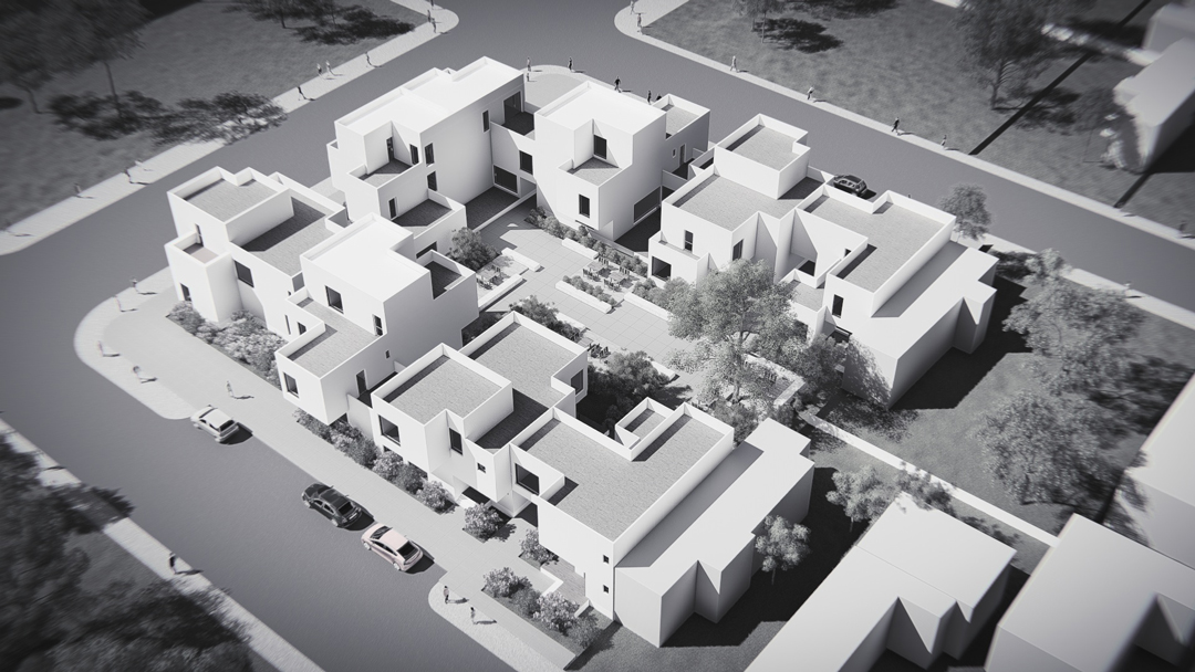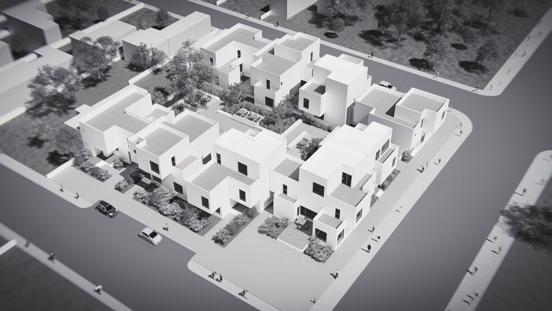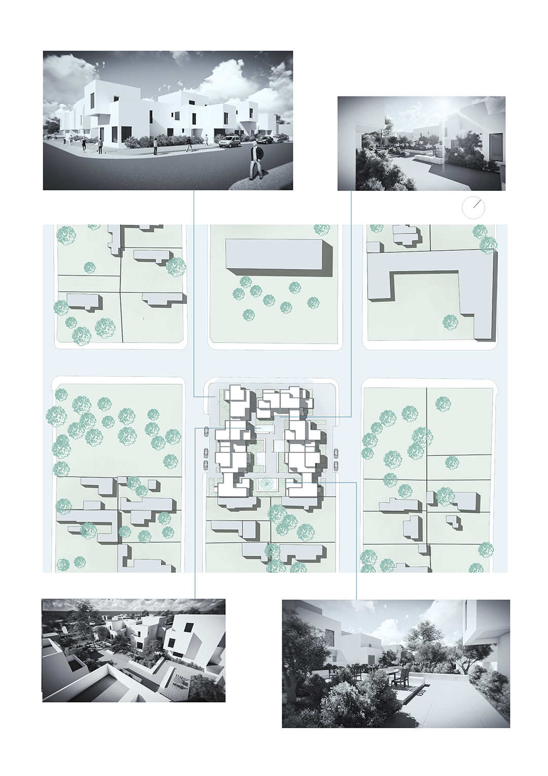 În urma analizei regulamentelor urbanistice, nu se puteau edifica locuințe mai înalte de P+2E și un POT de 35 %. Drept pentru care tema de proiectare a constat în conceperea a 9 case, organizând astfel o comunitate semi-publica în zonă.